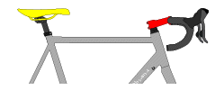 ロードバイクまた、スローピングフレームのロードバイクが最近増えて来ましたが、 スローピングフレームのロードバイクは適応身長も幅広く記載されています。 これなら、「身長差のある夫婦でも共用できそう!!」...ですが、 ホリゾンタルのフレームではサドルに腰掛ける事も出来なかった物が サドルに乗る事が出来るようになったと言うだけで、 適正なサイズで乗れるようになっている訳ではありません。 子供用の自転車に大人が乗れるのと同じような事です。